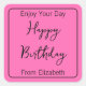 Happy Birthday & Senders Name Hot Pink and Black Square Sticker