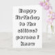 This card is great fun and good quality. I loved the humour inside and on the back. There is the opportunity to change the orientation of this card from landscape to portrait, which I did. It is relatively straightforward to amend the typeface to fit the new orientation. It was well packaged with no plastic. The printing on this card is excellent.
