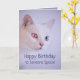 This card is great fun and good quality. I loved the humour inside and on the back. There is the opportunity to change the orientation of this card from landscape to portrait, which I did. It is relatively straightforward to amend the typeface to fit the new orientation. It was well packaged with no plastic. The printing on this card is excellent.