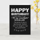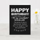 This card is great fun and good quality. I loved the humour inside and on the back. There is the opportunity to change the orientation of this card from landscape to portrait, which I did. It is relatively straightforward to amend the typeface to fit the new orientation. It was well packaged with no plastic. The printing on this card is excellent.