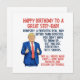 Funny Donald Trump "Happy birthday to a great stepdad..." design depicts Trump giving the thumbs up. This hilarious political birthday design makes nice gift for a bonus dad who stepped up for his stepkids.