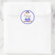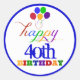 Happy Birthday Stickers Colourful Party Balloons with different coloured letters for the word "Happy Birthday" in primary colours and a royal blue edge around the circle. Add the age of the party you are celebrating by replacing the sample text of "40th" with your own. The word "happy" is in a fun script handwriting font and the word "birthday" is in bold block lettering. 40th birthday stickers, 50th birthday stickers, 60th birthday stickers, 70th birthday stickers, 80th birthday stickers