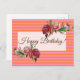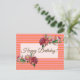 Beautiful postcard with pink stripes and roses watercolor drawing . Easy to customise your text. Beautiful postcard for any occasions.