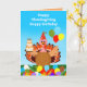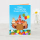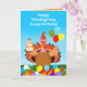 Happy Birthday Thanksgiving Turkey with Cake Card