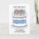 A cartoon birthday cake covered in lit candles and accompanied by the words 'Happy Birthday to a great litter picker'. The image is set against a white background.