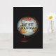 A brightly-coloured globe, photographed against a black background, is the subject of my "Happy Birthday To The Best Grandma On Earth!" birthday card. "Best Grandma" in black text on the face of the globe completes the front image of the card.