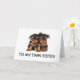 This card is great fun and good quality. I loved the humour inside and on the back. There is the opportunity to change the orientation of this card from landscape to portrait, which I did. It is relatively straightforward to amend the typeface to fit the new orientation. It was well packaged with no plastic. The printing on this card is excellent.