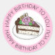 Birthday stickers. Pink birthday cake with flowers and butterfly stickers.
