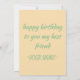 this card warm the heart of a sensitive soul, your card speaks your message to the honoured recipient every time they read it again. Card Details Front Message: Happy Birthday Inside Message: happy birthday to you my best friend you can change it