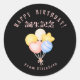 Happy Birthday Treat Pastel Balloons Black Classic Round Sticker