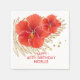 Happy Birthday, Tropical Red Hibiscus & Gold Leaf Napkin