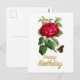 Happy Birthday Vintage Red Rose with Butterfly Postcard