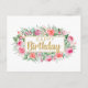 Happy Birthday Watercolor Pink Roses Postcard