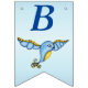 This flag shaped bunting Happy Birthday banner is light blue with dark blue letters and a whimsical pretty bluebird with its wings spread in flight with a yellow tail and yellow tipped wings. Customise the birthday year and Happy Birthday with the templates.