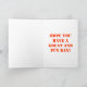 This card is great fun and good quality. I loved the humour inside and on the back. There is the opportunity to change the orientation of this card from landscape to portrait, which I did. It is relatively straightforward to amend the typeface to fit the new orientation. It was well packaged with no plastic. The printing on this card is excellent.