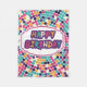 Birthday Greeting Card Design with Custom Text. Wishes Card Designed in Pink, Orange and teal circles cover all card with Happy Birthday Label Text.