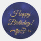 Happy Birthday with elegant blue and gold decor Classic Round Sticker