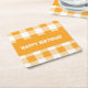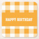 Happy birthday yellow gingham square paper coaster