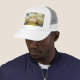 Celebrate joyfully with this custom trucker hat featuring "Happy Birthday" printed in vibrant yellow text. The design is brought to life with an image of five small cakes, each topped with colourful candies, adding a playful and festive touch. The sleek white-on-white colour scheme creates a clean and modern look, perfectly complementing the bright design elements.