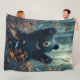Happy Black Bear Tossing Leaves Fleece Blanket