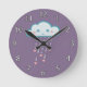 Happy Blue Rain Cloud Raining Pink Hearts Round Clock