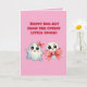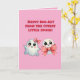 Lovely card, great design and good quality card. Arrived in plenty of time, really pleased (as always). Printing of good quality, lovely card.