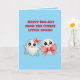 Lovely card, great design and good quality card. Arrived in plenty of time, really pleased (as always). Printing of good quality, lovely card.