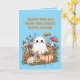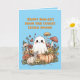 Lovely card, great design and good quality card. Arrived in plenty of time, really pleased (as always). Printing of good quality, lovely card.