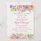 This colourful floral invitation features a wide spectrum of colours and a variety of blooms in a top and bottom matching border.