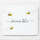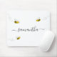 Decorated with happy, smiling yellow and blac bumblebees. A chic white background. Personalise and add a name. The name is written with a modern hand lettered stylie script with swashes. To keep the swashes only delete the sample name, leave the spaces or emoji's in front and after the name.
