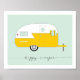 This art print features an original illustration by Charming Ink of a retro camper, also known as a caravan. The script font proclaims — happy camper.