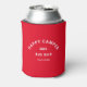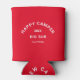 Happy Campers, Camping Crew, personalised retro red can cooler. Personalise with the year of your camp trip and location. Perfect for adventurous friends or family as they embark on their happy campers trip or reunion camping weekend. Order matching bottle coolers for the whole camp crew. Designed to match our Happy Camper Retro Red & Vintage Black Collection.