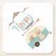 HAPPY CAMPER Cute Retro RV Square Paper Coaster