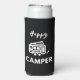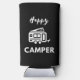 Happy Camper in White with Blue Background Seltzer Can Cooler