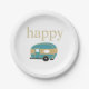 Happy Camper Personality Teal Gold Travel Trailer Paper Plate