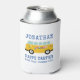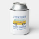 A colourful can cooler makes a great gift for campers or keepsake from your summer road trip. The can cooler features an illustration of a retro RV camper with your name , Happy Camper and Road Trip Summer 2020 . All text is in a simple modern blue typography and is easily personalised.