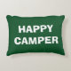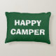 HAPPY CAMPER throw pillow for camping or RVing roadtrip. Funny quote for men and women who love to camp and travel with RV or trailer. Green or custom colour. Cute camping accessories with humourous saying. Fun gift idea for road trip. Double sided design.