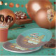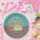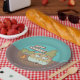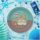 Happy Camper sign with cartoon trailer, sleeping bag, campfire and trees. Each set of paper plates is printed on durable paper stockand are perfect for serving dinner, appetizers, or salads. 9" diameter. FDA approved for food contact and safety. Fully biodegradable; printed with vegetable-based inks. Printed in USA.