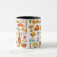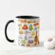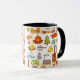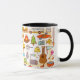 Happy Campers Mug - the colours are red, yellow, blue, brown, and green with camper fun designs such as: campfire, camper, guitar, canoe and more!