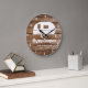A cheerful wall clock, perfect for your camper or RV. Shown with a rustic wood background and white silhouette camper design with the phrase "Happy Campers". Customise your family name to make it one of a kind. Also available with solid background colours, just check out our store!