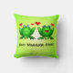 Happy Cartoon Frogs Love Hearts Green Cushion