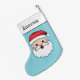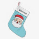 Happy Cartoon Santa Claus Head On Blue Small Christmas Stocking
