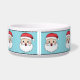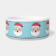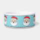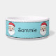 Destei's original cartoon illustration of a happy Santa Claus head. The Santa is wearing a red and white hat, he has a fluffy white beard and his face expression is joyful. The background colour is blue with black top and bottom borders. There is also a personalizable text area for the name of the pet.
