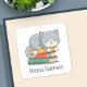 Happy Cat Book Stack Custom Name Bookplate Square Sticker