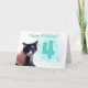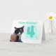 Painting of the number four in green with pink swirl ribbons, with a photo of our black and white tuxedo cat wearing a pink and white dressed, with the greeting, Happy Birthday, is printed on custom greeting cards. Thank you for shopping CherylsArt on Zazzle: http://www.zazzle.com/CherylsArt*/