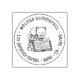 Happy Cat on top of Book Stack Round Address 3 Rubber Stamp