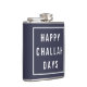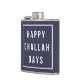 Wish your friends and loved ones "Happy Challah Days" and take a sip of your favorite libation. Funny holiday flask features modern, minimalist white text on a dark midnight blue background.