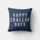 Add a touch of humour and modern style to your holiday decor this Hanukkah with this accent pillow. Design features "Happy Challah Days" in white block typography on a classic navy blue background. Use the optional customisation field on back to add a name or message of your choice for a unique and fun gift!