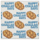 Features an original marker illustration of a loaf of braided challah bread, with HAPPY CHALLAH DAYS in a fun font. Great for Hanukkah crafting!