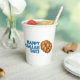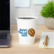 Paper cup design features an original illustration of a loaf of braided challah bread, with HAPPY CHALLAH DAYS in a fun font. Ideal for celebrating Hanukkah and the Jewish holidays.